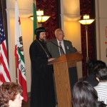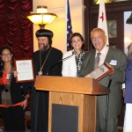 LOS ANGELES, July 11, 2013 – The Bishop of the Coptic Orthodox Diocese of Los Angeles, His Grace, Bishop Serapion, along with local Muslim Public Affairs Council (MPAC) leader Dr. Hathoot Salam, were presented with a certificate of acknowledgement from the City of Los Angeles Human Rights Commission (CLAHRC), at the Annual Iftar dinner (July 10, 2013), highlighting His Grace’s promotion of peace, love and dignity.