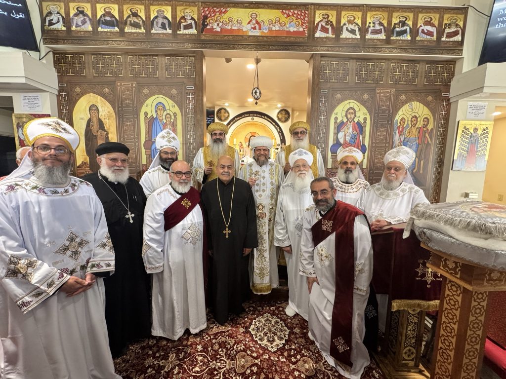 Participated in the Divine Liturgy were Hegumens: Fr. Felimon Mikhail, Fr. Athanasius Ragheb, Presbyters: Fr. Mena Fam, Fr. Moses Samaan, Fr. David Michael, Archdeacon: Arsani Sidarous, and Deacon: Girgis Hanna.