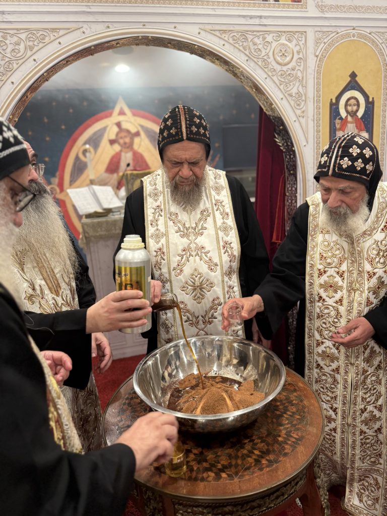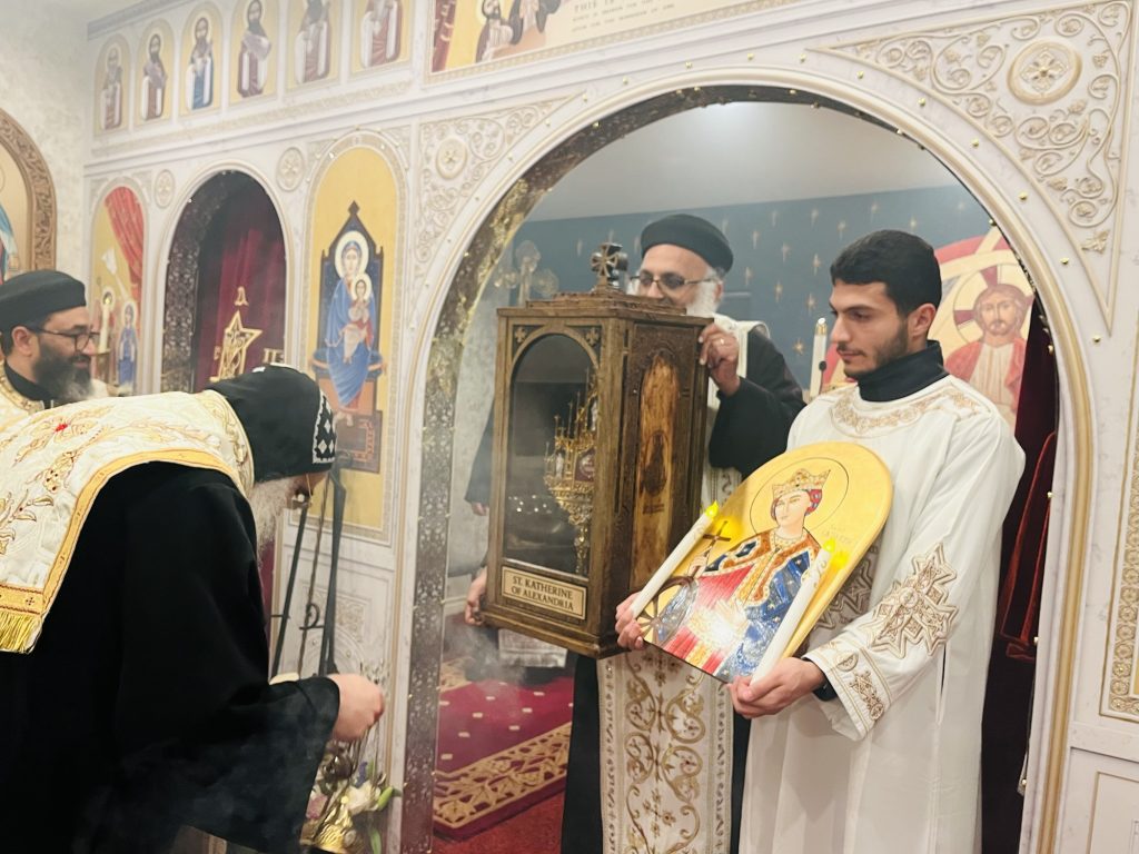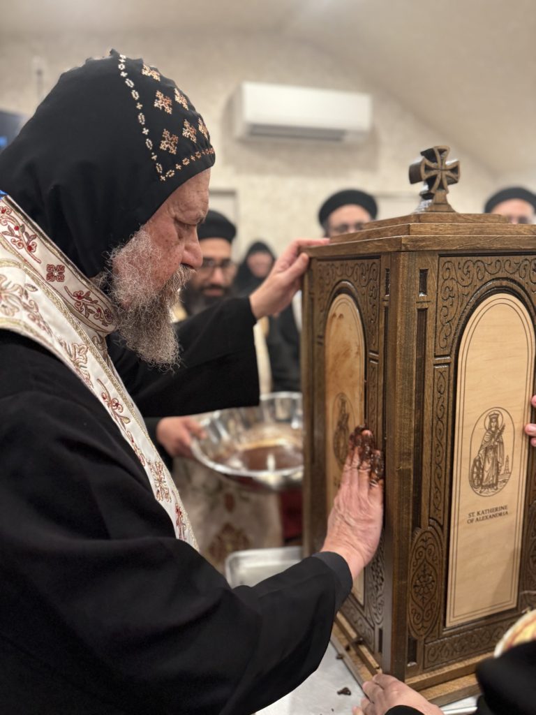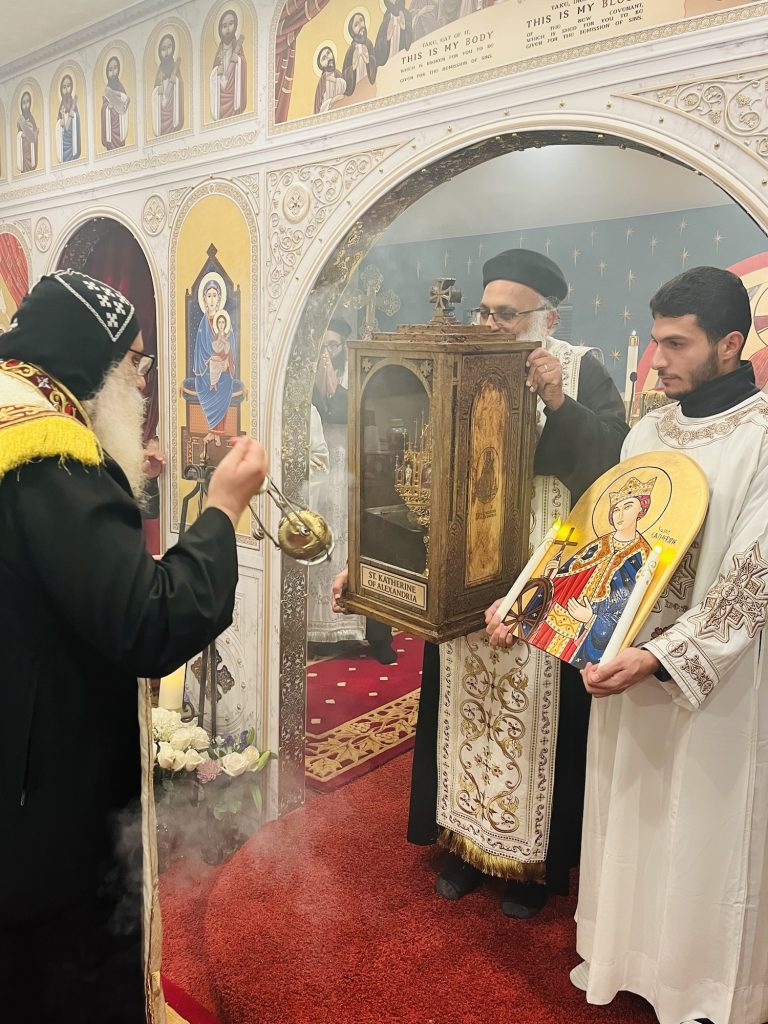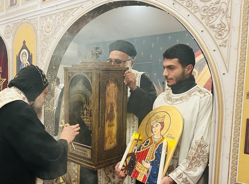 His Eminence Metropolitan Serapion accompanied by His Grace Bishop Abraham and His Grace Bishop Kyrillos celebrated the Vespers prayer of the 29th of Hatour and added spices to the relics of St. Katherine of Alexandria at St. Katherine of Alexandria & St. Verena Coptic Orthodox Convent in Hemet, California.