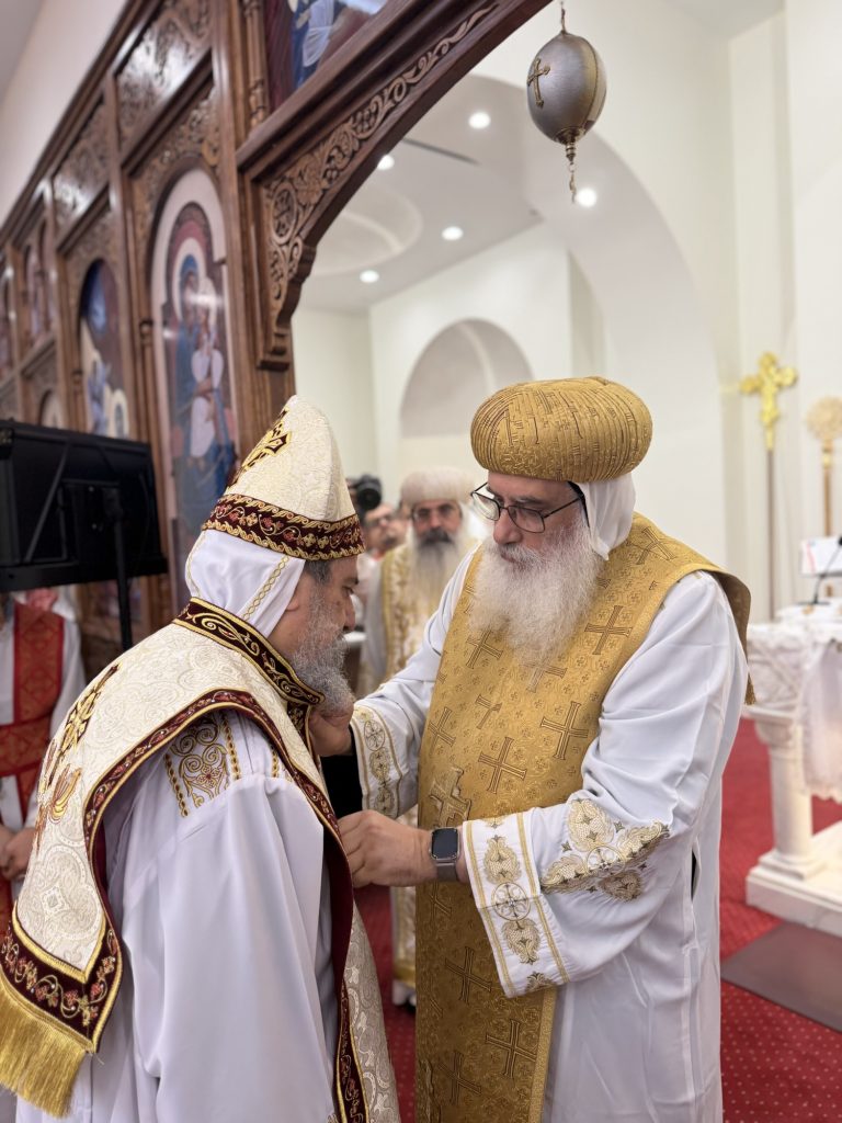 His Grace Bishop Abraham and His Grace Bishop Kyrillos participated in this blessed elevation and the blessing of the new church building.