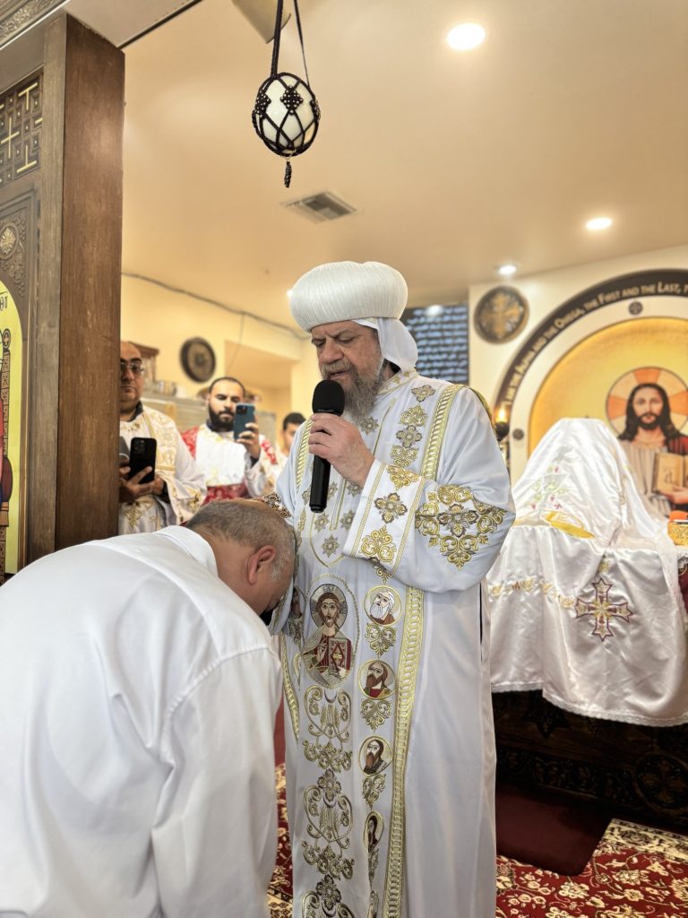 Participated in the Divine Liturgy were Hegumens: Fr. Felimon Mikhail, Fr. Athanasius Ragheb, Presbyters: Fr. Mena Fam, Fr. Moses Samaan, Fr. David Michael, Archdeacon: Arsani Sidarous, and Deacon: Girgis Hanna.