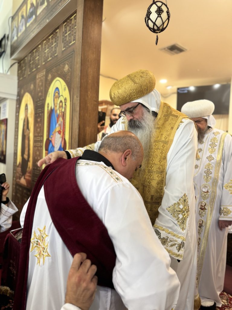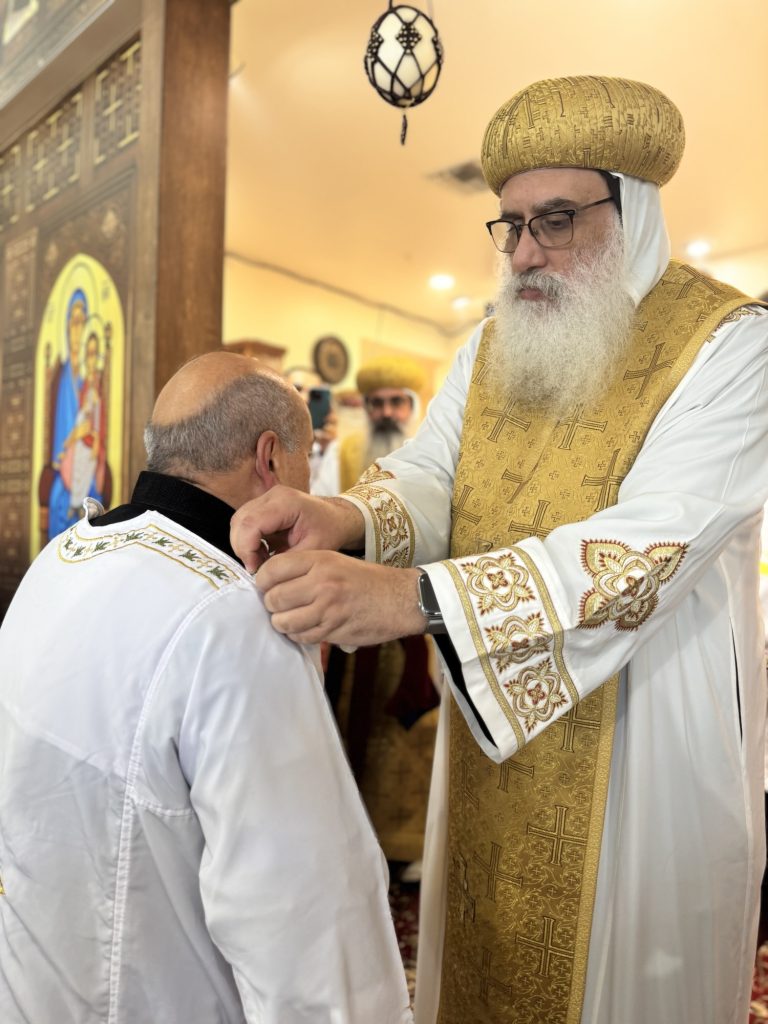 On the 7th week of the Blessed Great Lent Fast, Baramhat 30, 1741, Tuesday, April 8, 2025, His Eminence Metropolitan Serapion accompanied by His Grace Bishop Abraham and His Grace Bishop Kyrillos laid hands on and ordained the blessed servant Mr. Kameel Hanna as Deacon Kyrillos Hanna for the Christ loving Diocese of Los Angeles to serve at St. Anthony Coptic Orthodox Church in South Corona, California.