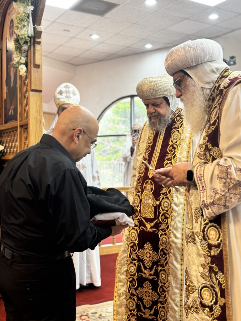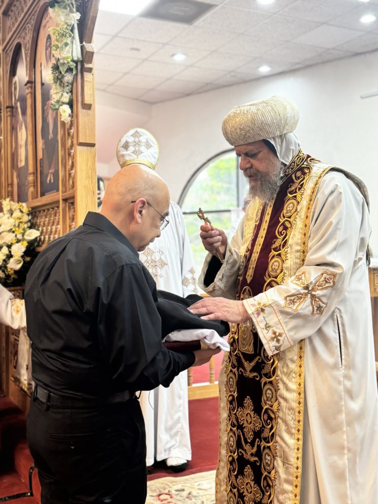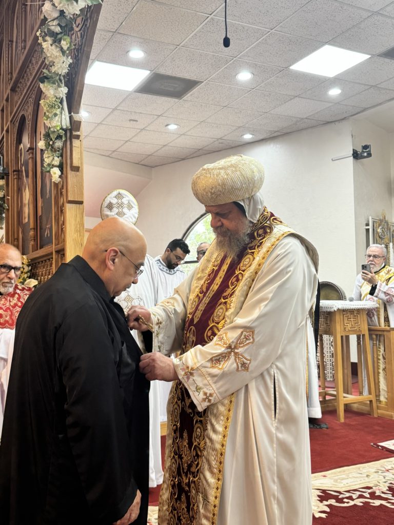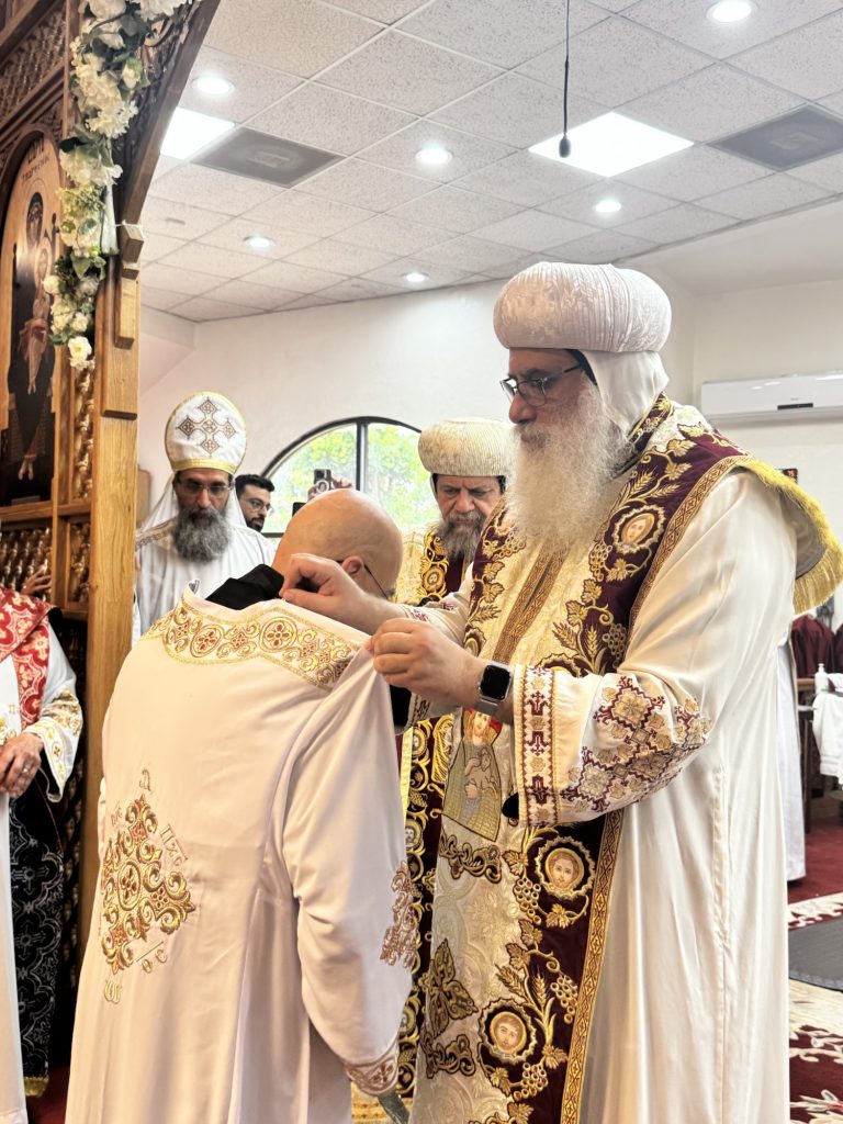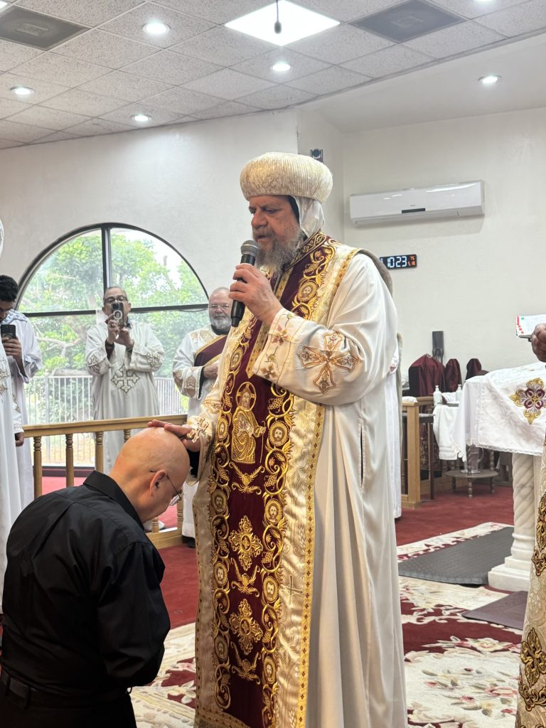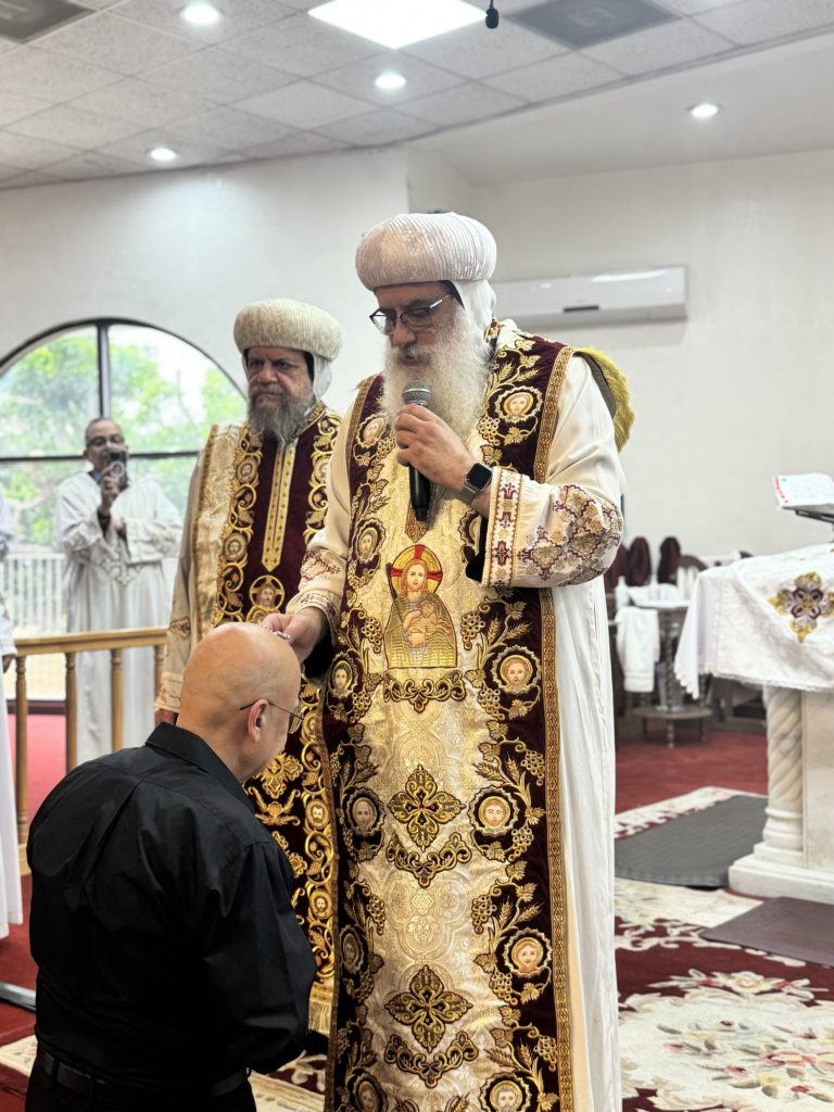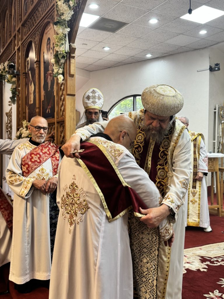 On the 4th Sunday of Pentecost, Bashans 10, 1741, May 18, 2025, His Eminence Metropolitan Serapion accompanied by His Grace Bishop Abraham laid hands on and ordained the blessed servant Mr. Emad Hanna as Deacon Mikhail Hanna for the Christ loving Diocese of Los Angeles to serve at St. Maurice Coptic Orthodox Church in Pomona, California.
