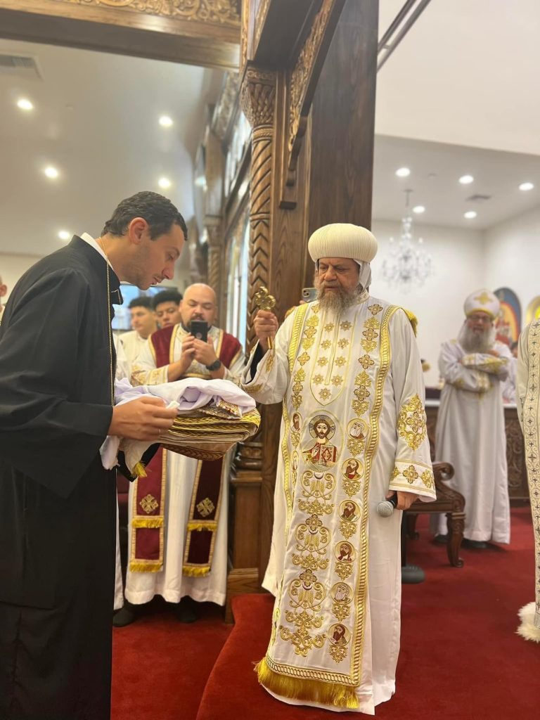 On the 2nd Sunday of the blessed month of Mesore, August 20, 2023, His Eminence Metropolitan Serapion accompanied by their Graces, His Grace Bishop Suriel, His Grace Bishop Abraham, and His Grace Kyrillos laid hands on and ordained the blessed Deacon Gabriel Iskander, as a priest in the Diocese of Los Angeles to serve at St. Justina Coptic Orthodox Church in Rancho Cucamonga, California. He was given the name Fr. Gabriel Iskander.