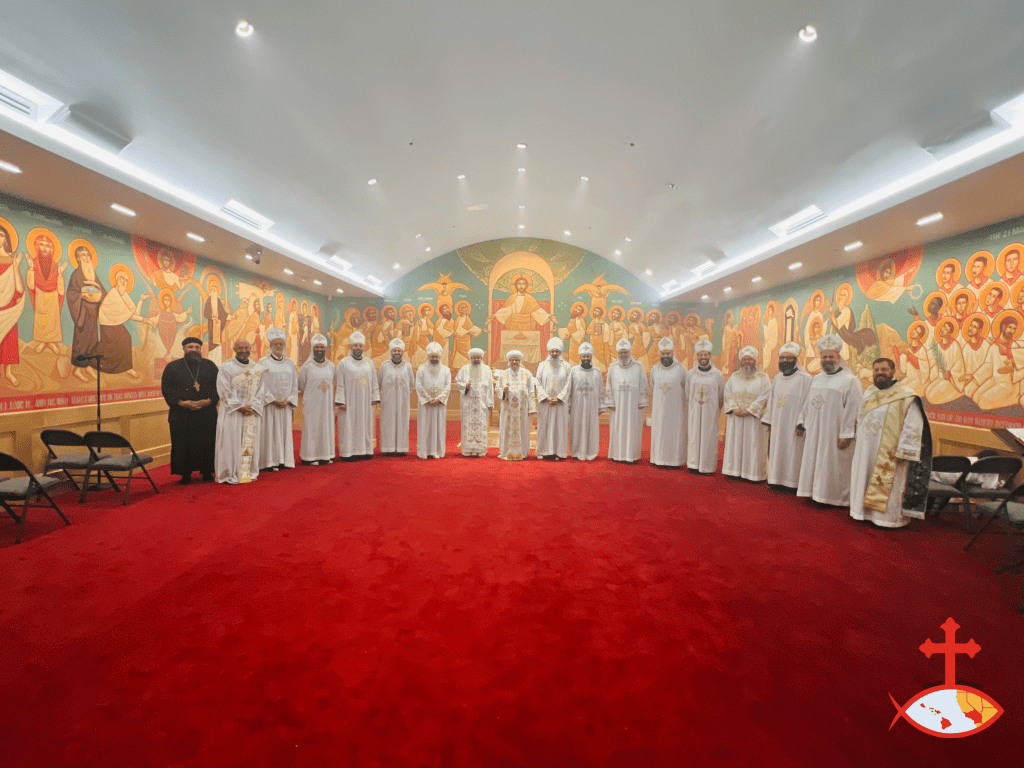 On the 18th day of the blessed month of Hatour, Tuesday, November 28, 2023, His Eminence Metropolitan Serapion accompanied by His Grace Bishop Kyrillos met with several diocesan clergy at St. Paul American Coptic Orthodox Church in Irvine, California. The day began with the celebration of the Divine Liturgy, followed by an agape meal and the meeting.