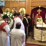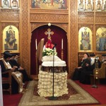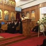The funeral service was preceded by the celebration of the Divine Liturgy by His Grace and several diocesan clergy. Afterwards, the funeral service for departed priests commenced with many priests carrying the pure body of Fr. Bishoy on their shoulders to the place of prayer. In the funeral, the entire community lifted their hearts to God and asked Him to repose the pure soul of Fr. Bishoy in the Paradise of Joy, in the bosom of our holy fathers, Abraham, Isaac, and Jacob. At the conclusion of the funeral service, His Grace delivered a moving homily in Arabic and English celebrating the life and service of Fr. Bishoy.