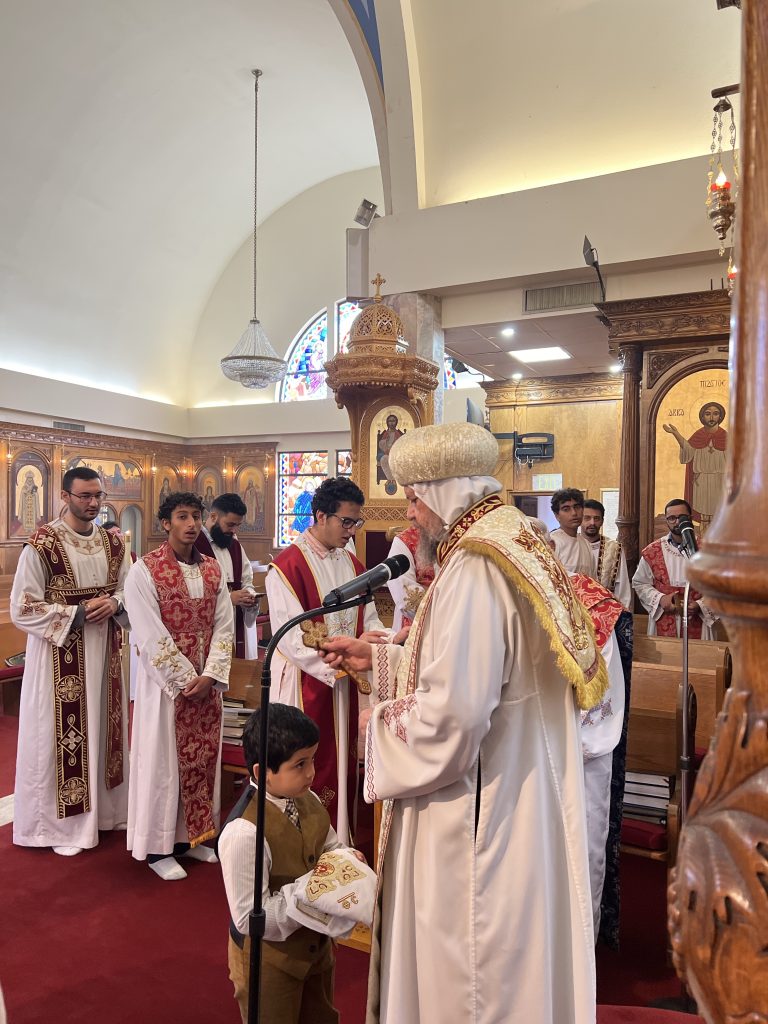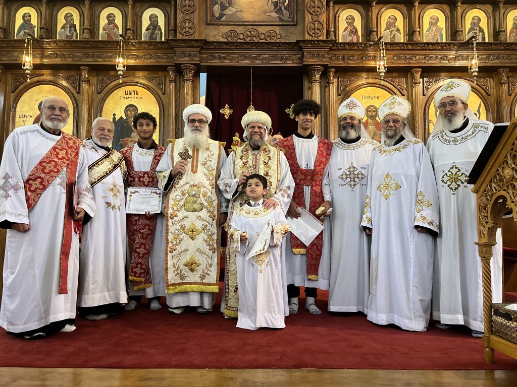 His Eminence and His Grace baptized baby Josiah Kirollos Guirguis and ordained two of the faithful to the rank of Reader and one of the faithful to the rank of Chanter.
