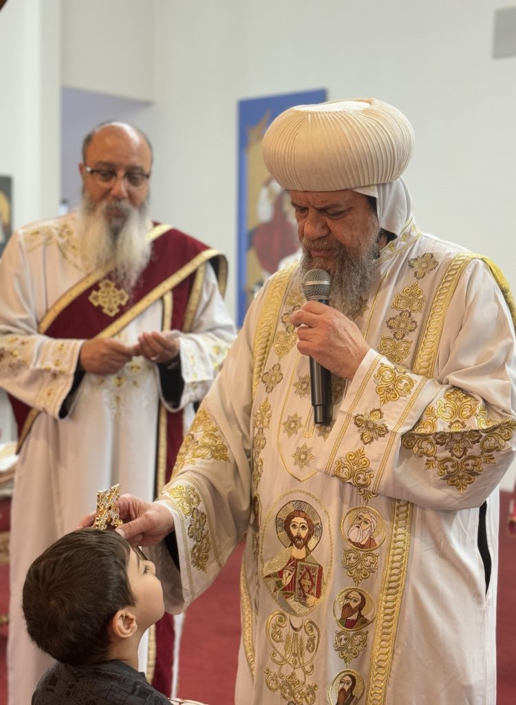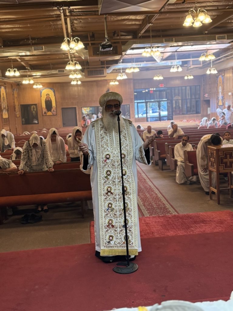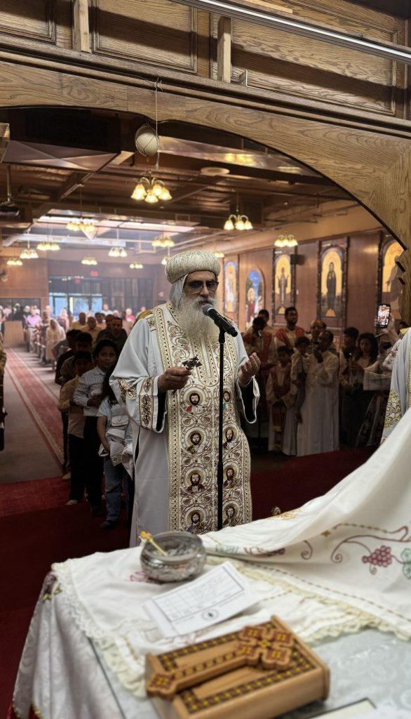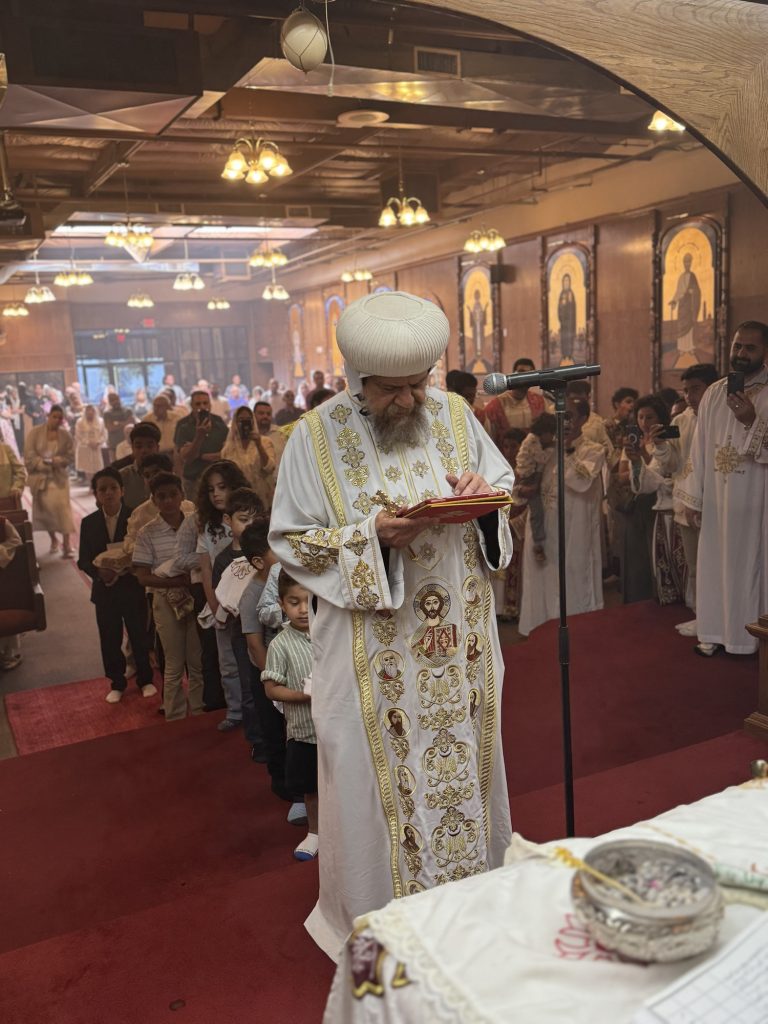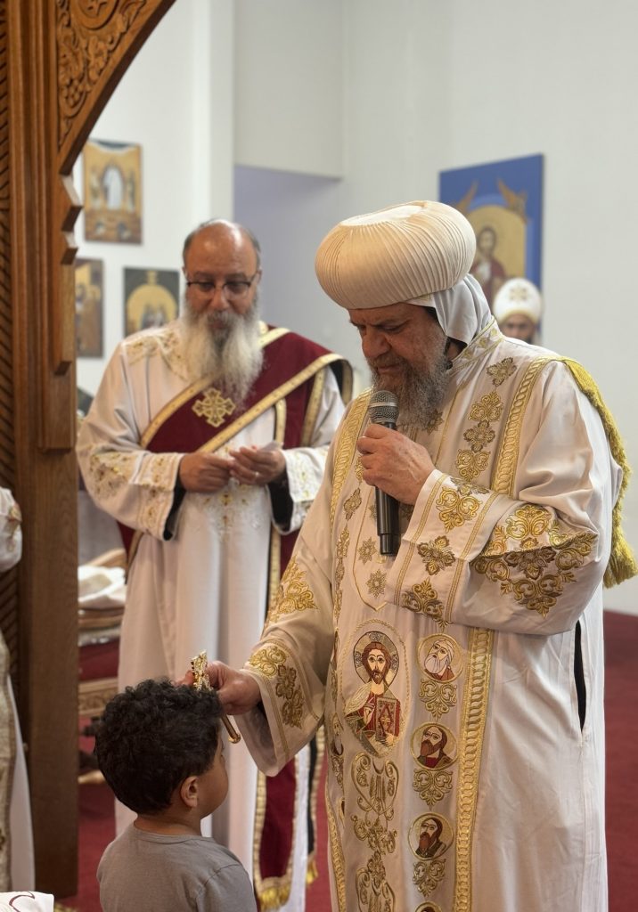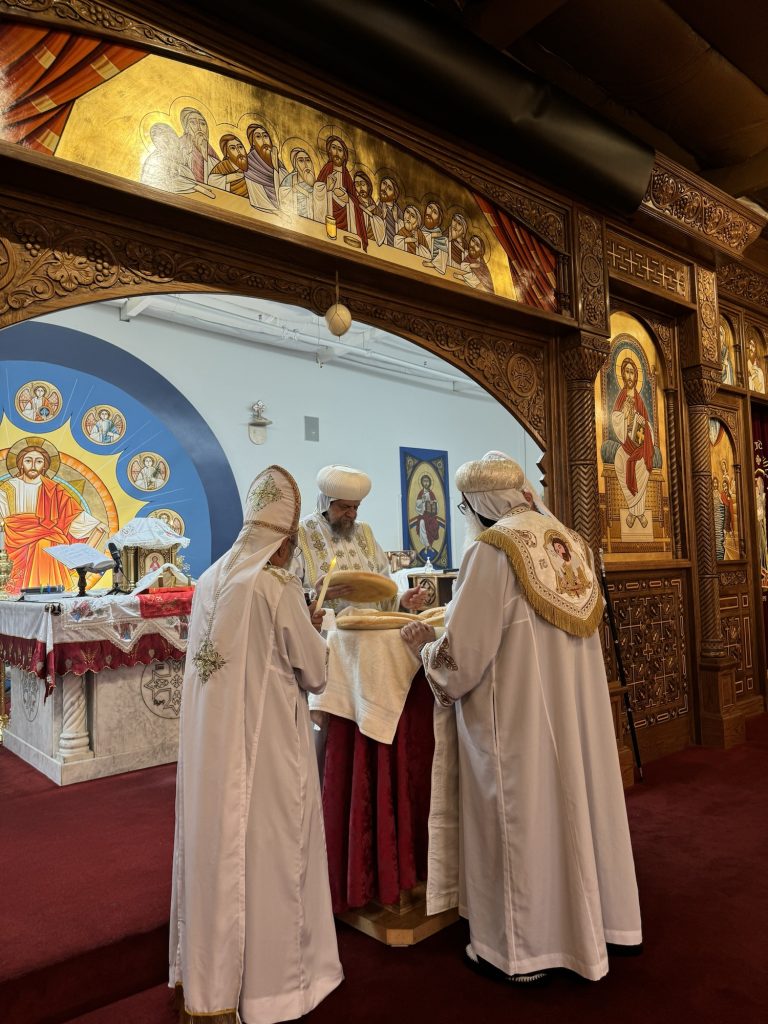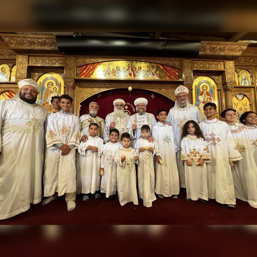 Participated in the Divine Liturgy were Hegumens: Fr. Bishoy Kamel, Fr. Bishoy Ray, Presbyters: Fr. Mark Hanna, Fr. Mina Ghebrial, Fr. Youssef Zaki, Fr. Michael Fanous, Fr. Kyrillos Fam, and Fr. Jeremaiah Said, Archdeacon Botros Botros, Archdeacon Kyrillos Beshara, and Deacon Mina Zakhary.
