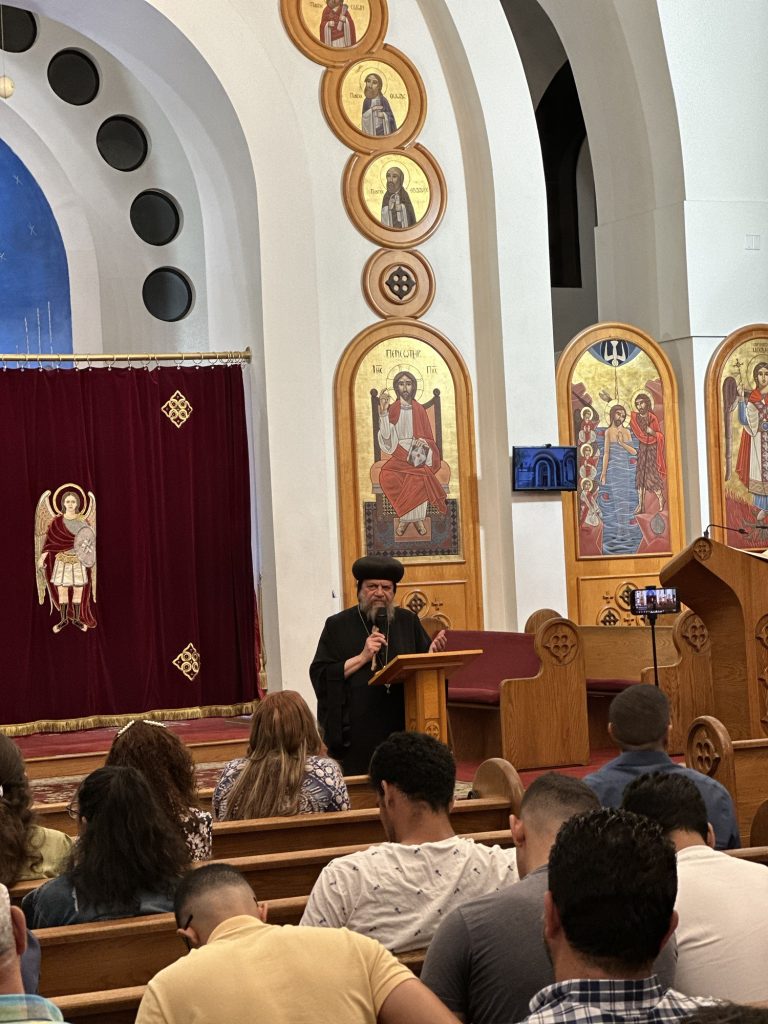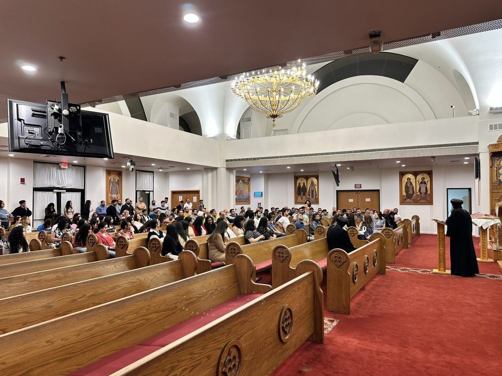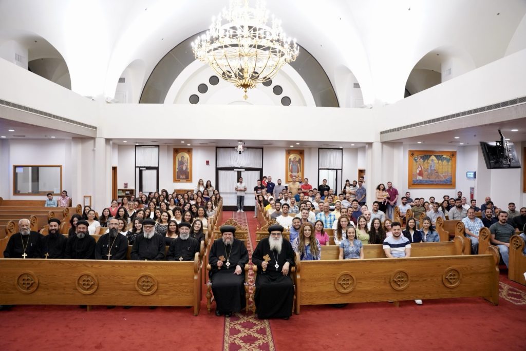 His Eminence Metropolitan Serapion accompanied by His Grace Bishop Abraham met with the Arabic Youth across the Diocese for a Spiritual talk and discussion with His Eminence at Archangel Michael Coptic Orthodox Church in Santa Ana, California through the Good Shepherd Arabic Youth Meeting.