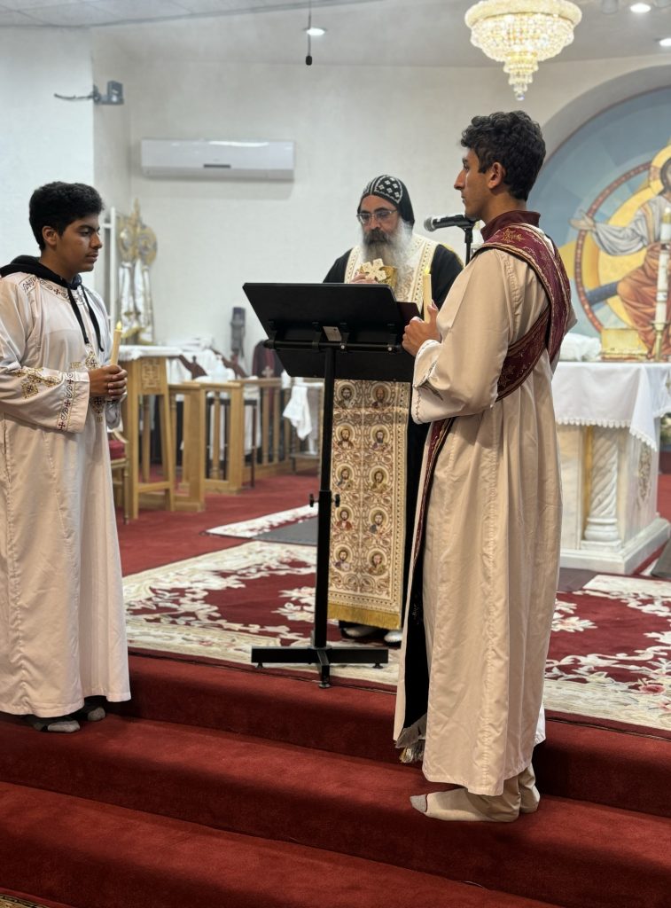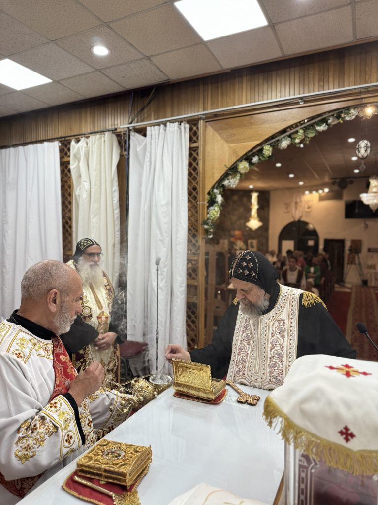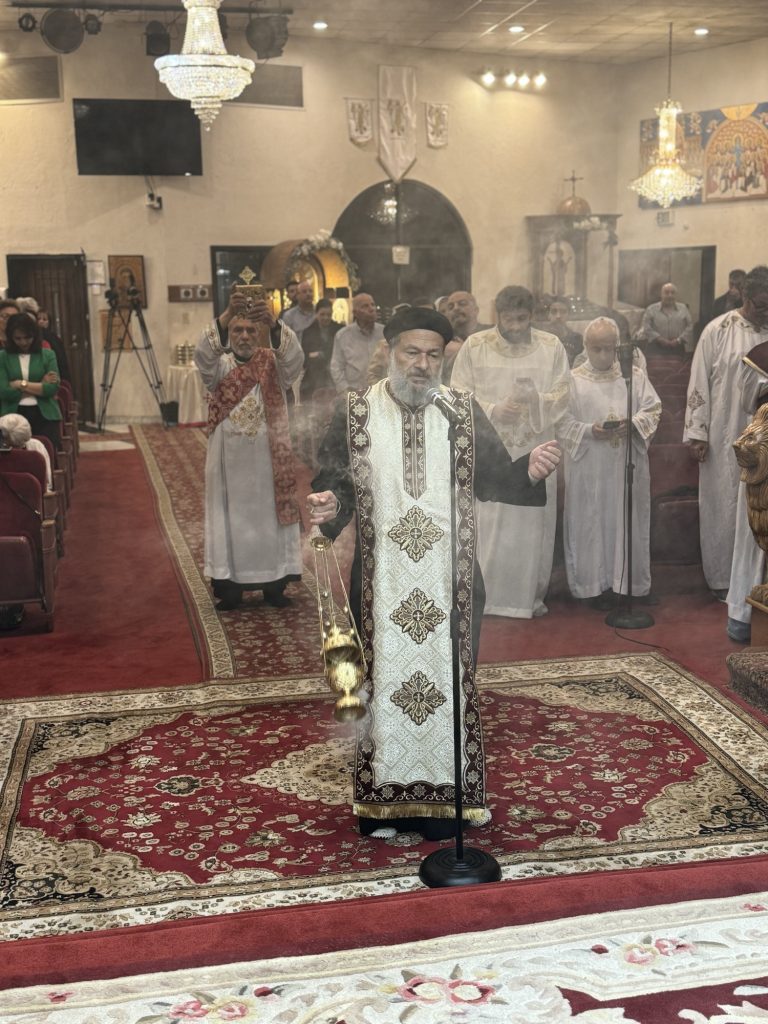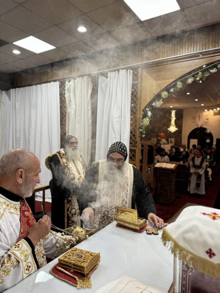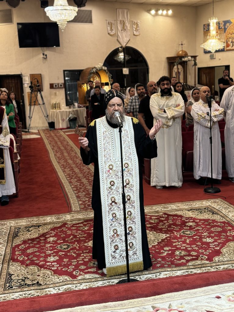 Participated in the Vespers Prayer were Hegumens: Fr. Mina Girgis, Fr. Bishoy Ray, Presbyters: Fr. Bishoy Bolous, Fr. Mark Malak, and Archdeacon: Karas Milik.