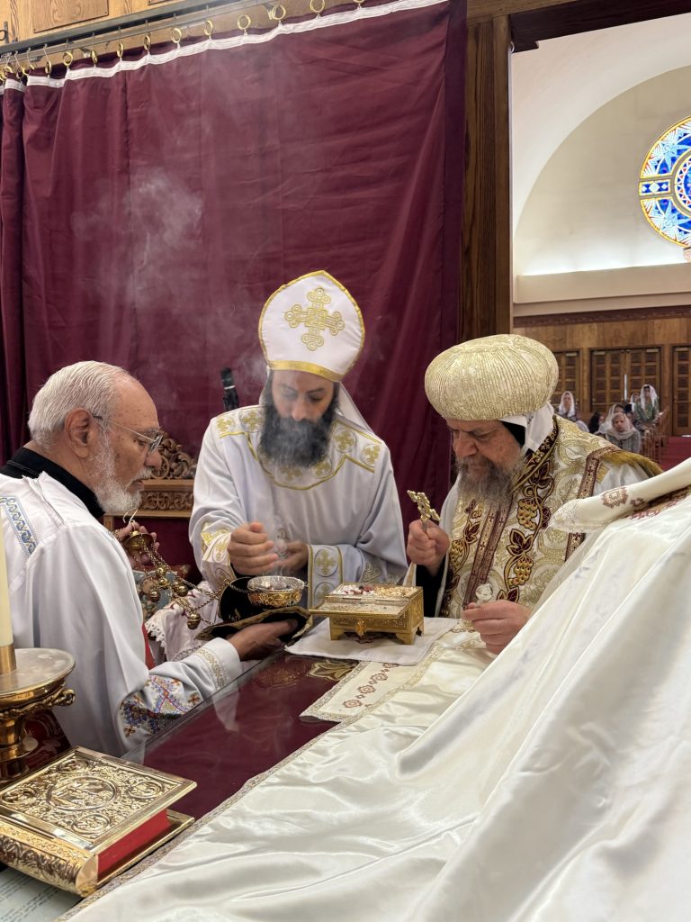 Participated in the Divine Liturgy were Hegumen: Fr. Meina Albeir, Presbyters: Fr. James Soliman and Fr. Jacob Serry, Archdeacon Efrayem Soliman, Deacon George Tadrous, and Deacon Antonious Yacoub.