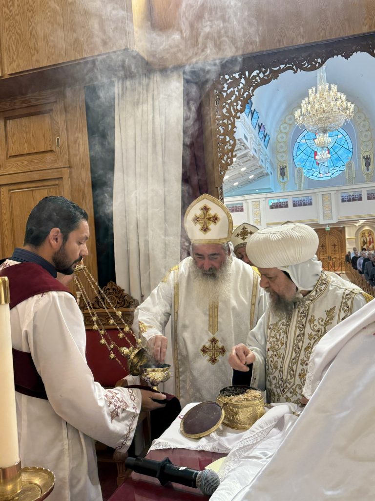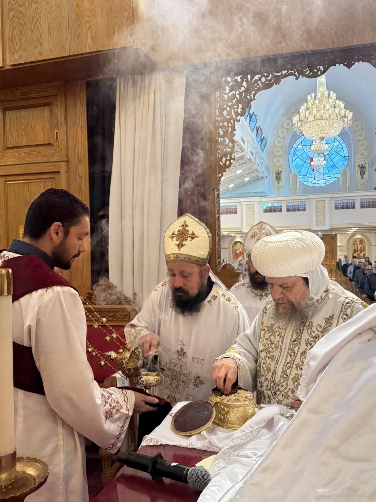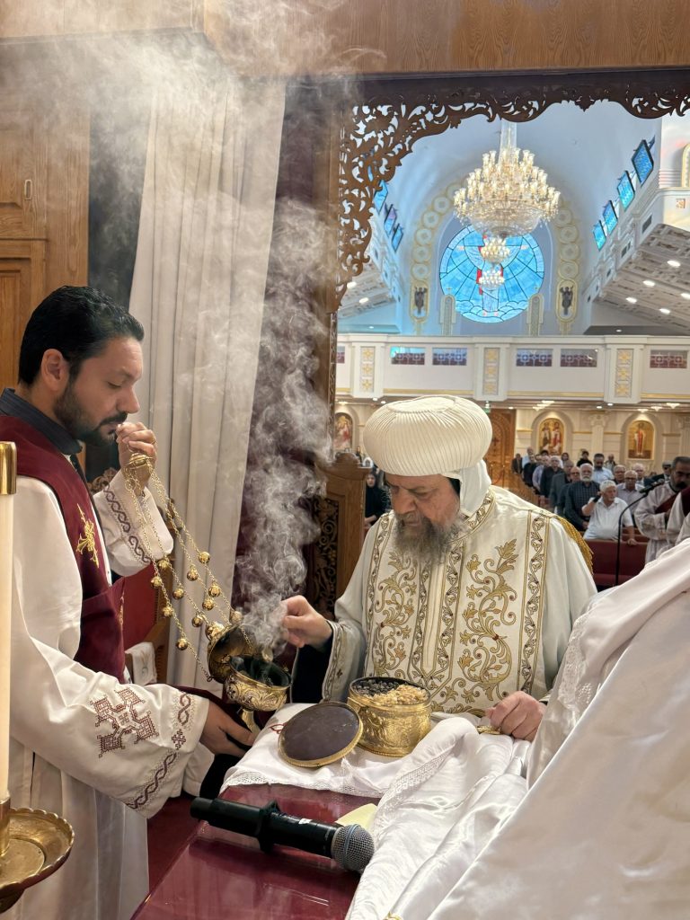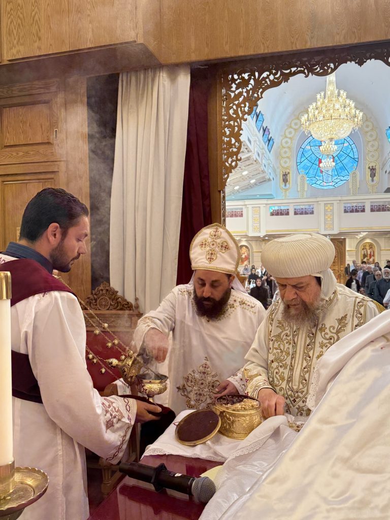 Participated in the Divine Liturgy were Hegumen: Fr. Kyrollos Wassily, Presbyters: Fr. Angelos Guirges, Fr. Philopater Hanna, Archdeacon: Arsani Sidarous, and Deacon Wannas Attia.