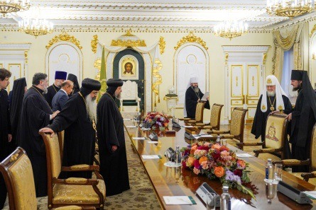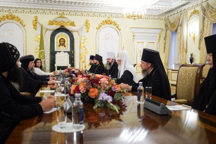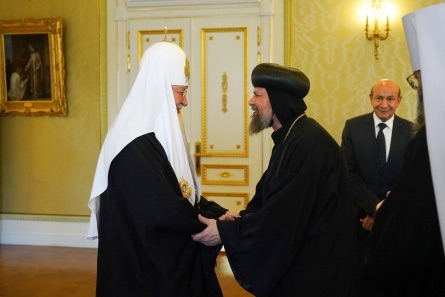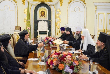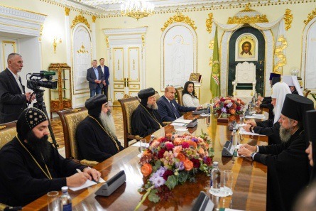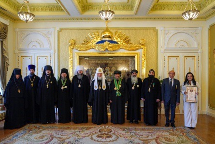 On Tuesday, September 9, 2025, His Holiness Patriarch Kirill, Patriarch of Moscow and All Rus’, received the members of the Bilateral Commission for Dialogue between the Russian Orthodox Church and the Coptic Orthodox Church and commended them for their work during the past 10 years. HH Patriarch Kirill delivered a letter to HH Pope Tawadros II, in which HH presented a church building in St Petersburg to the Coptic Orthodox Church. HE Metropolitan Serapion presented a letter from HH Pope Tawadros II to HH Patriarch Kirill, and thanked HH for the church of St Mark the Apostle gifted to the Coptic Orthodox Church in Moscow. The Coptic Orthodox Church expressed the desire for the unity of the Russian Orthodox Church and conveyed prayerful support for the victims of the war. HH Patriarch Kirill then bestowed awards on the members of the Commission, along with his apostolic blessing.