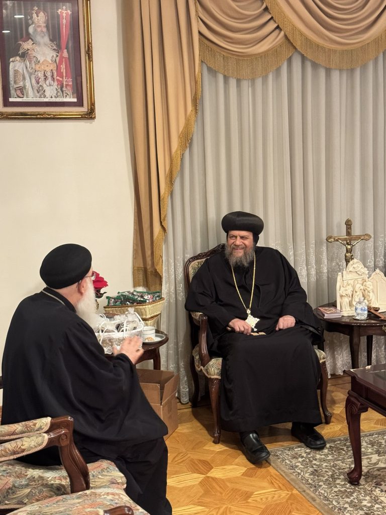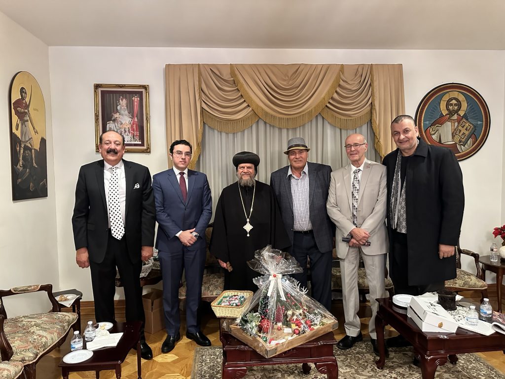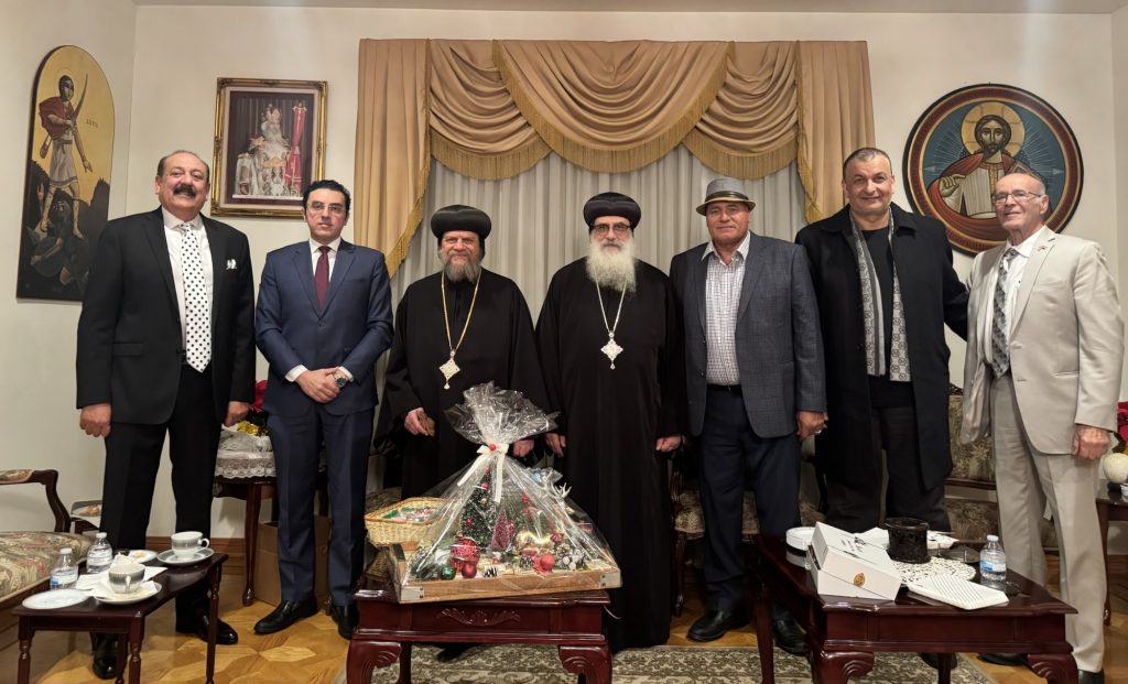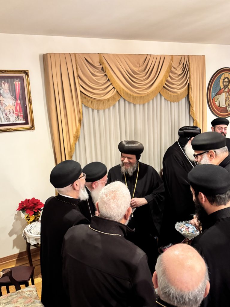 On Tuesday, January 7, 2025, His Eminence Metropolitan Serapion accompanied by His Grace Bishop Abraham, and His Grace Bishop Kyrillos received Mr. Ahmed Anwar the Counsellor of His Excellency Ambassador Mr. Hossam Ali, Consul General of the Arab Republic of Egypt in Los Angeles, and in the presence of members of the General Union of Egyptians Abroad, and Mr. Rafat Salib, The President of the Egyptians United to wish His Eminence and Their Graces a Blessed Feast of Nativity at the Dioceses Residence in Los Angeles.