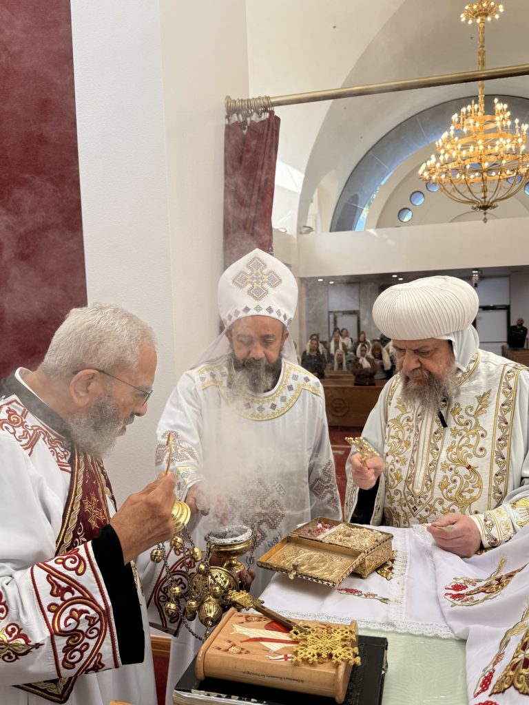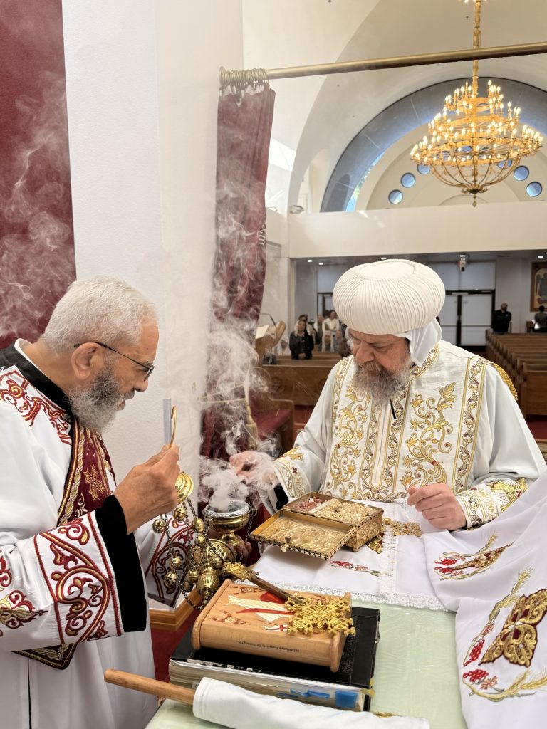 Participated in the Divine Liturgy were Hegumens: Fr. Felimon Mikhail, Fr. Youhanna Ibrahim, Presbyters: Fr. Mark Hanna, Fr. David Benjamin, and Archdeacon: Mikhail Ashamalla.