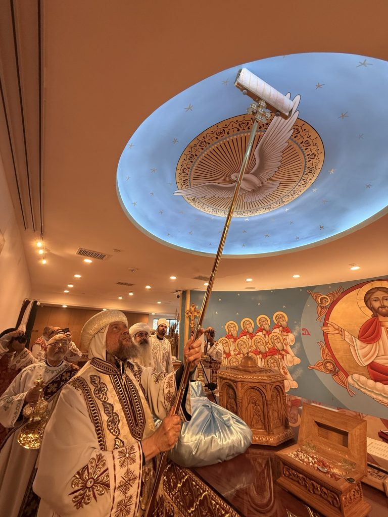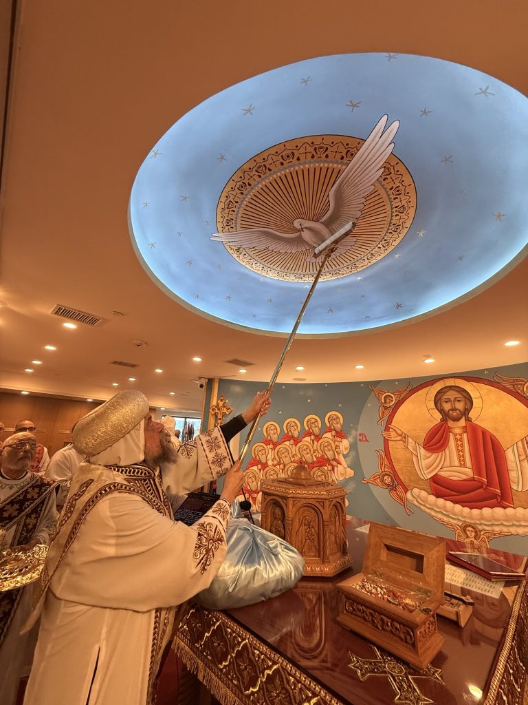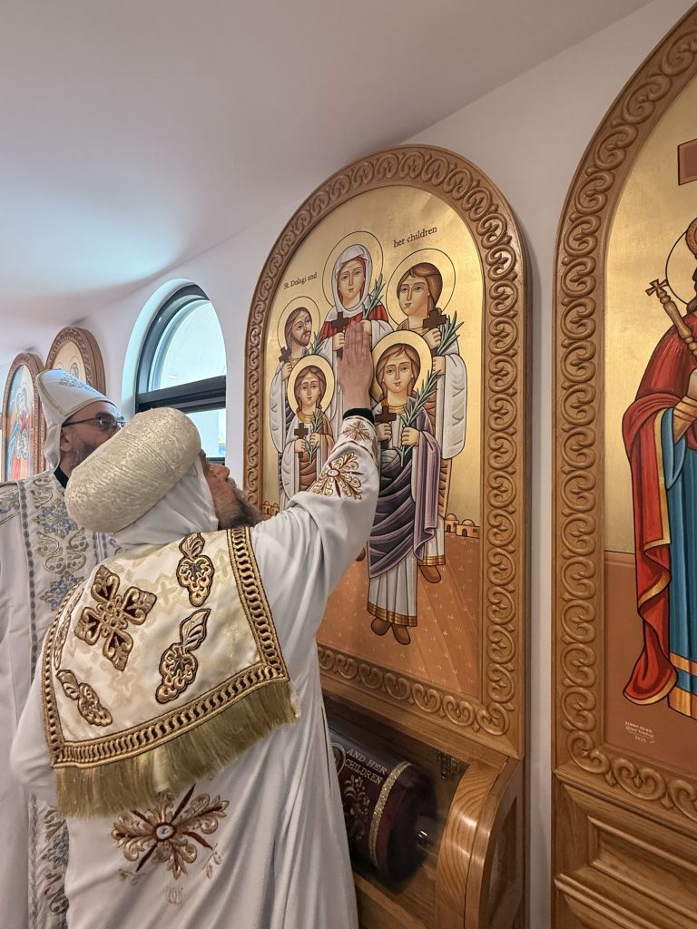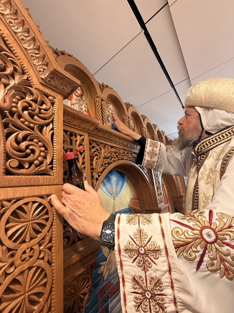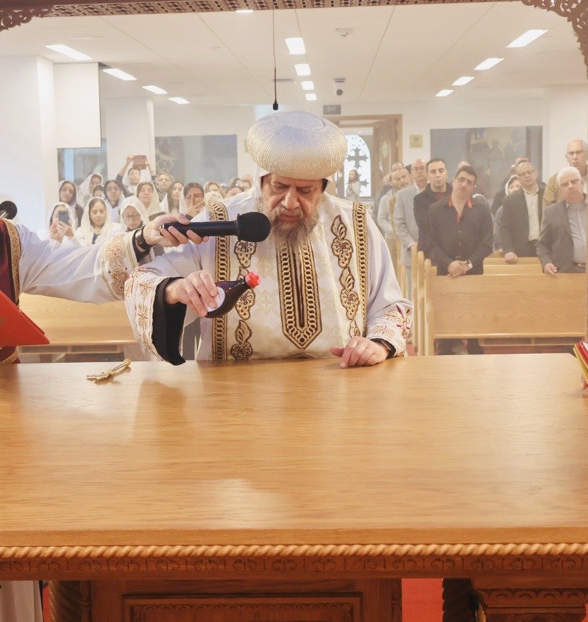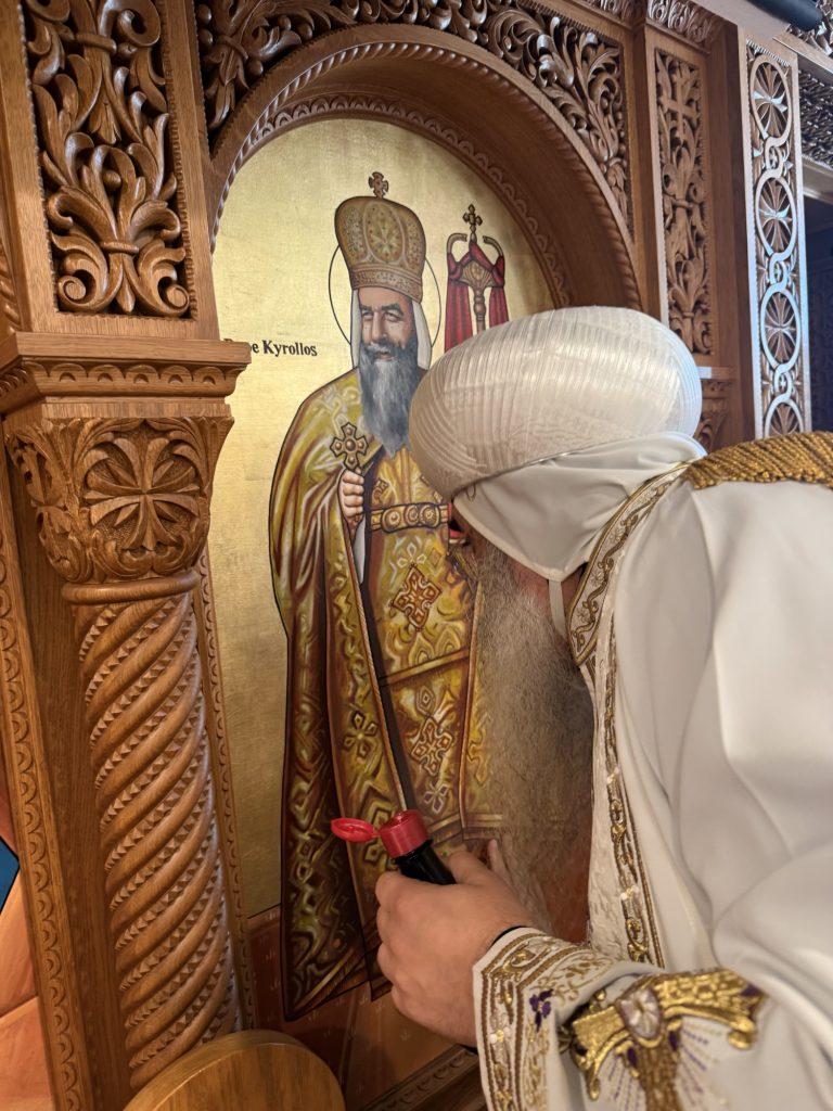 The main altar was consecrated in the name of St. Pope Kyrillos VI and the side altar was consecrated in the name of Saint Hegumen Pishoy Kamel.