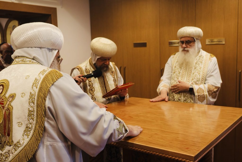 Participated in the blessed occasion: Hegumens Fr. Macarius Shehata and Fr. Bishoy Ray; Presbyter Fr. Jeremiah Awad; Archdeacon Kyrillos Beshara; Deacon Botros Peters; and Deacon Mina Zakhary.
