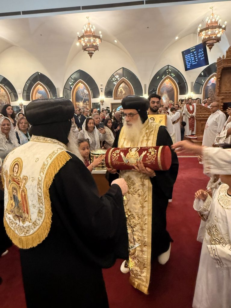 His Eminence Metropolitan Serapion accompanied by His Grace Bishop Abraham and His Grace Bishop Kyrillos celebrated the Vespers prayer of the 3rd Sunday of the blessed Coptic Month of Hathor and the receiving of the relics of St. Mina at St. Mina Coptic Orthodox Church in Colton California.