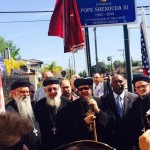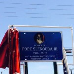 On Sunday, March 16, 2014, His Grace Bishop Serapion along with the priests and congregation of St. John Coptic Orthodox Church unveiled a permanent dedication in honor of the Thrice-Blessed Pope Shenouda III at the corner of Cienega Ave and Valley Center Ave in Covina, California. Also present at the ceremony was the Hon. Walter Allen III, Mayor of Covina along with several other dignitaries.