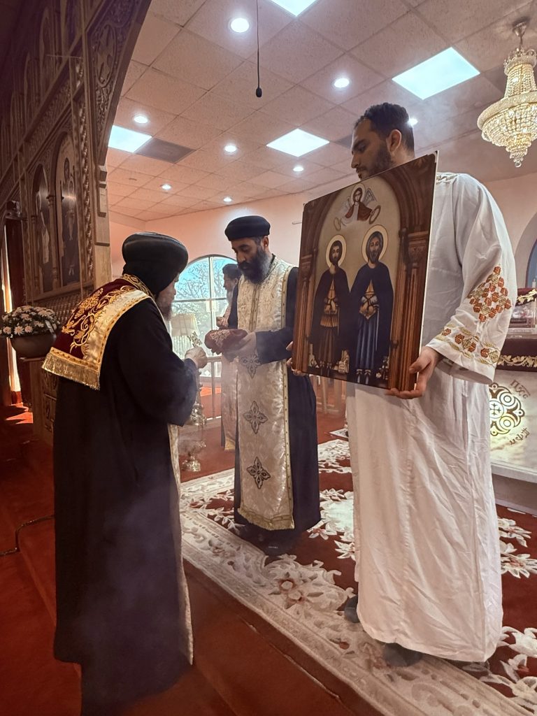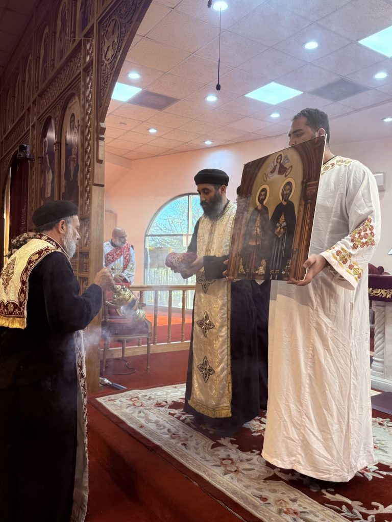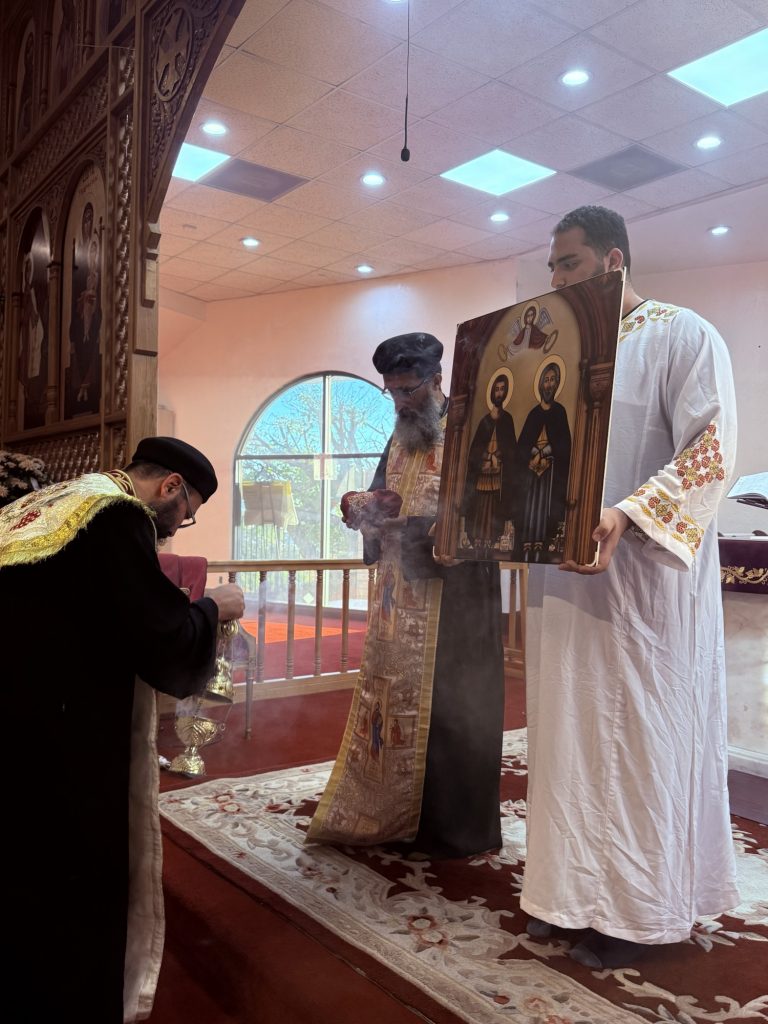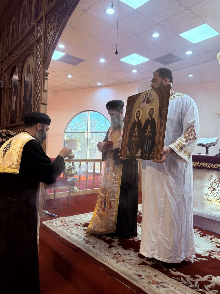 Participated in the Vespers Prayer were Hegumen: Fr. Mina Girgis, Presbyters: Fr. Mark Malak, Fr. Paul Isaac, Fr. Joseph Gorgi, Archdeacon: Karas Milik, and Deacon: Mikhail Hanna.